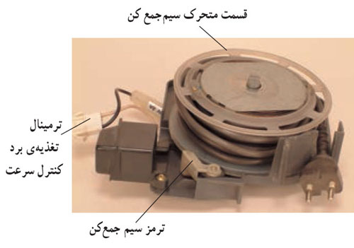 رفع عیب: در اکثر موارد اینگونه دیده می شود که برق وارد سیم جمع کن شده ولی به سبب عدم اتصال شاخک های سیم جمع کن به حلقه های گردان قرقره ، فاز یا نول و گاها” هر دو وارد دستگاه نمی شوند ودر نتیجه جارو رو شن نخواهد شد . جهت رفع عیب کافی است شاخک ها را کمی به حالت عمود نزدیک نموده ، سپس قرقره را بر روی آن ها قرار دهیم .در نتیجه این عمل حلقه های گردان برشاخک ها فشار وارد نموده و آن ها را به طرف پایین می راند. حالت فنری شاخک ها، ارتباط بین آن ها و حلقه های گردان را من بعد ایجاد خواهد نمود.